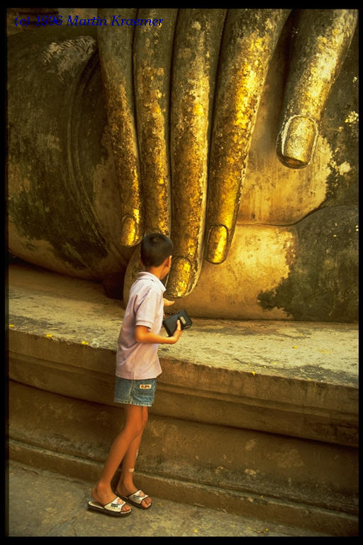 One of my favorite shots: a boy covering the Buddha's finger with a